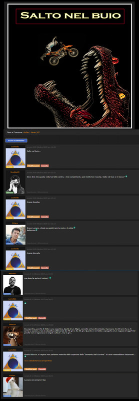 Premetto che non riesco a partecipare al gioco per motivi miei di tempo... Per quanto riguarda il gioco, migliorarlo è qualcosa di possibile ma difficile, c'è sempre qualcuno che la prende male. Già esiste un regolamento che stasera ho scoperto che è arrivato al capitolo C5...è una bibbia dovessi cominciare adesso a partecipare per la prima volta, il regolamento è (per me) un'ostacolo. Aggiungere altre regole, imporre, obbligare a seguire delle direttive... fa perdere lo svago. Si, lo svago.... questo non è un lavoro, ne un concorso a premi. Premettendo che il tutto puo continuare cosi come è, mi fa piacere segnalare le cose che non apprezzo : 1) il regolamento deve essere snello ed elastico (tanto il gioco continua lo stesso) 2) il giudice dovrebbe essere a rotazione (cosi anche i nuovi possono proporre una loro foto e acquisire idee per migliorare) 3) ci deve essere una giuria ( almeno tre giurati che votano, per ridurre la possibilità di far vincere la PP non migliore ) Se volete commentare questa mia segnalazione, lo potete fare anche QUI |