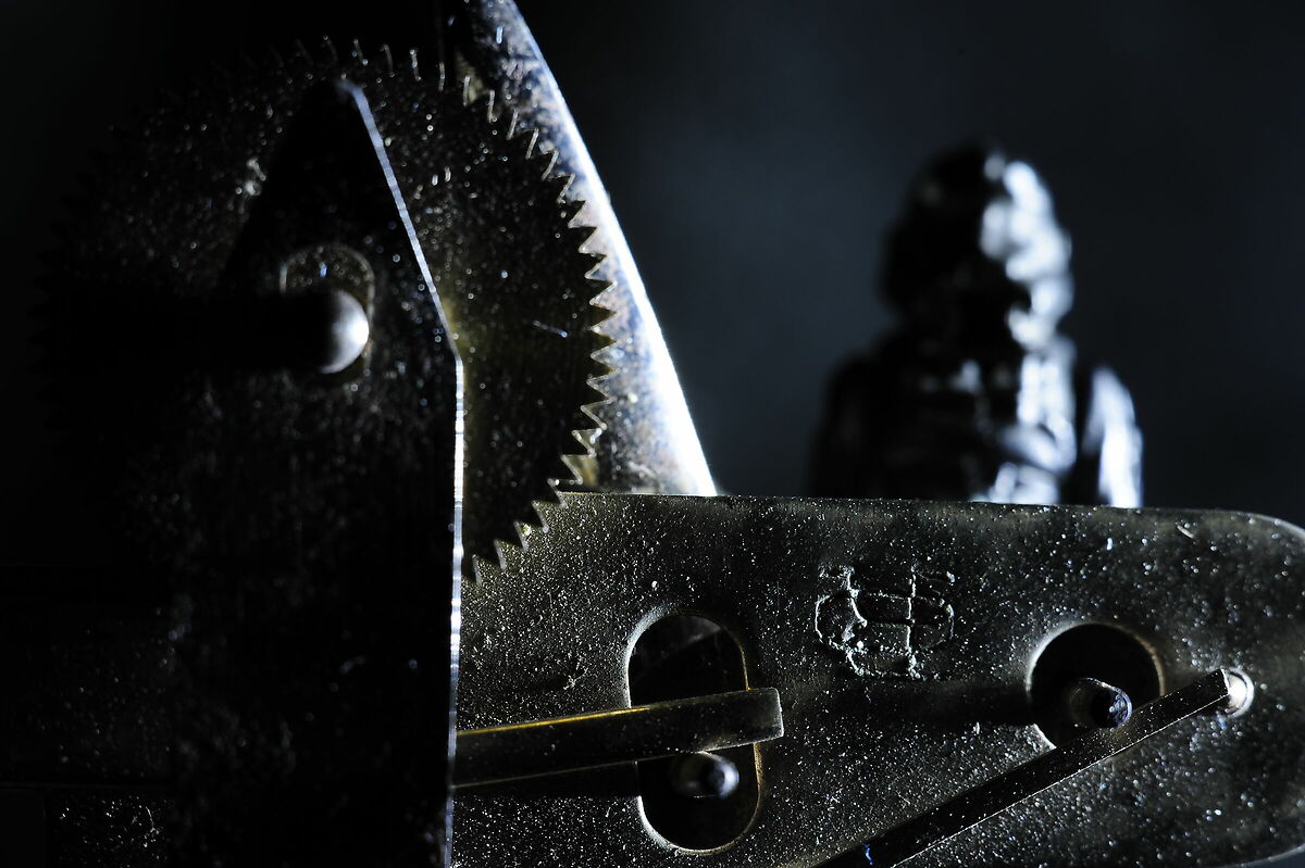 STE Backstage: luci ed ombre ottenute sfruttando il set dei Cilindri Di Memoria; ruotando il tutto di 90 gradi, modificando le posizioni dei pin e con il medesimo accrocchio di lenti, dopo qualche prova ho ottenuto l'effetto e l'illuminazione particolare a due zone che cercavo. Gli alti iso e SOPRATTUTTO le Close-Up da 77 mm hanno aggiunto fondamentale atmosfera old-style. A differenza della scena da cui è tratto il backstage, ritratta a f 22, l'obiettivo ha lavorato a tutta apertura, f 3.5, donando un effetto piuttosto onirico allo scatto e sfumando il cerchio nero periferico delle close-up ben visibile precedentemente. Il fuoco è stato preso non senza difficoltà poco dietro l'Esploratore ammorbidendone la sagoma tenuta scura, per stagliarla a contrasto sullo sfondo più chiaro. Per pura fortuna un riflesso parassita della grande lente anteriore 10x corre orizzontale pressoche' allineato al protagonista, sottolineandone la posizione e guidando lo sguardo verso il nostro Eroe. Set DIVERTENTISSIMO e pieno di inaspettate occasioni di sperimentazione !!! |