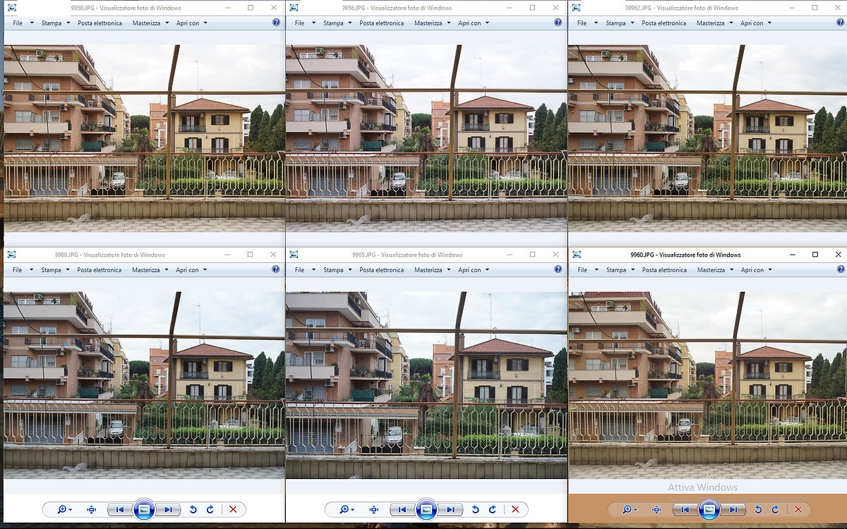 Questo è un test casalingo di sei obiettivi di qualità molto diverse, a f/8 e con messa a fuoco distante (prima casa sulla dx). Sono crop al 100% di foto scattate sui 42 mpx della a7rII, jpg in camera senza rielaborazioni. Quali siano gli obiettivi non è importante. Se guardate i dettagli e la risolvenza nei crop al 100% tutti e sei gli obiettivi, chi più chi meno, ne hanno a sufficienza per un uso non feticistico. Se guardate la foto intera rimpicciolita però noterete che la qualità percepita risulta diversa. PS ho fatto il test a infinito e a f/8 perché in questo momento ho bisogno di sapere su quali lenti contare per un uso paesaggistico. Ho fatto il test anche a TA, con risultati meno simili ma per me meno importanti. |