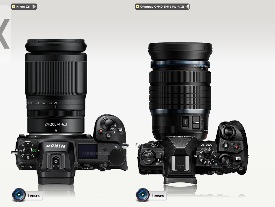 sotto un confronto fra Nikon Z6+24 200 e Olympus OM-D E-M1 Mark III+ 12 100 F4