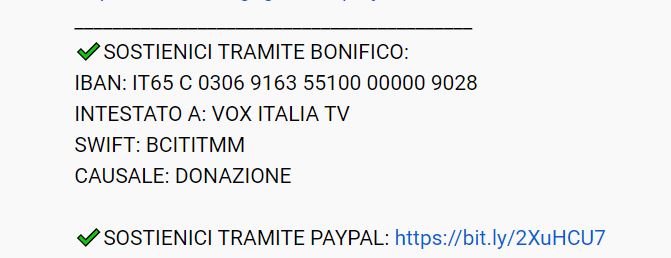 Una domanda 0oo: come tu mi insegni tutto gira intorno al vil denaro, ma se i TG mentono, bigpharma lo fa per i soldi e tu sei un libero pensatore perchè dovrei fidarmi di persone che mi chiedono soldi sotto forma di donazione o abbonamento? Non pensi che forse siamo tornati ai tempi dei maghi negli anni 80 e molti fanno leva su questo? Posso capire tu che hai un forum gratis, se non ricordo male, ma questi? Qualche dubbio mi viene, poi dietro a VOX mi sembra ci sia Fusaro che di palle ne ha sparate