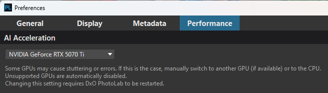 DxO vede altro, se hai due schede e una usa OpenCL e la 5080 CUDA DxO ne deve vedere una sola se no va in conflitto e chiude tutto. Avere i driver AMD Adrenalin attivi e la 5080, di per se crea casino a DxO, DxO deve ricevere un indirizzo che porti solo alla 5080. Il processore montato ha una sua grafica interna e per me di sicuro è abbinata al monitor e compare come scheda preferita.