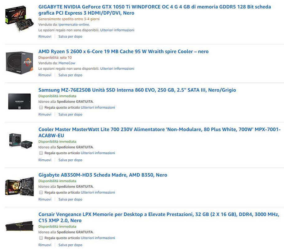 Mentre per la scheda madre andrei su una 450 invece che la 350 altrimenti devi aggiornare il bios per il 2600 che e' l' ultimo processore
