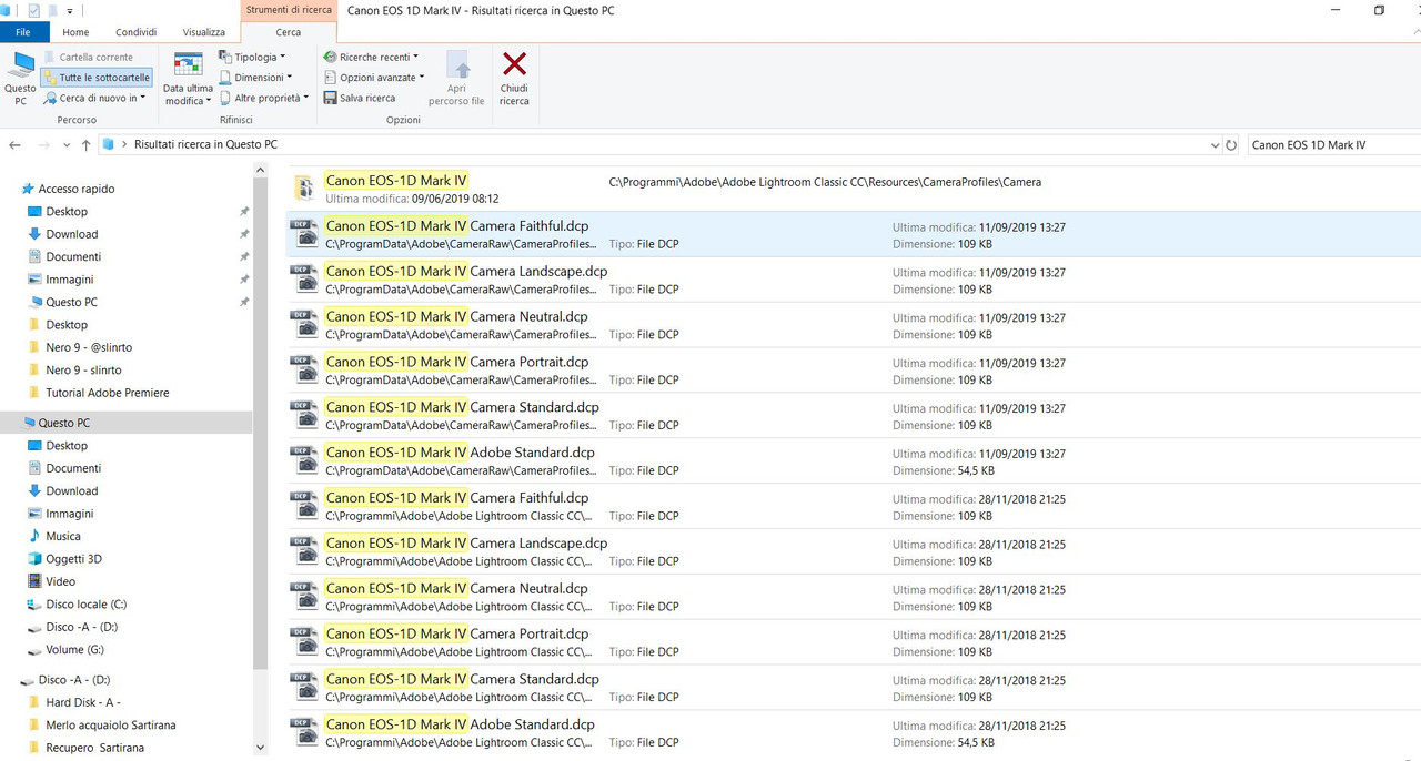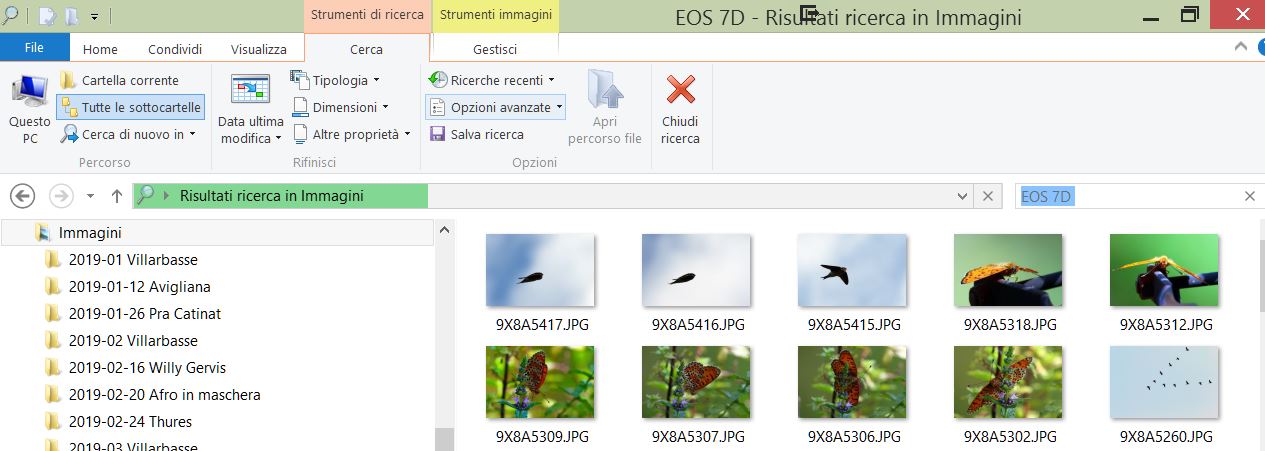 Grazie per la risposta. Ho fatto la ricerca inserendo nella casella ricerca il nome della fotocamera, Canon 1d mark ma non mi ha trovato le immagini contenute in quel hard disk ad esempio i file raw che hanno certamente i dati exif. Grazie