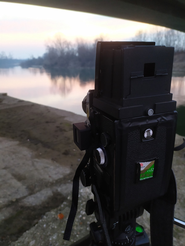 “ Ma cribbio adesso non si può andare in giro, cosa fotografate voi? „ Ho la fortuna di avere un fiume (in effetti due, la confluenza del Bormida nel Tanaro) a due km a piedi da casa. Essendo in zona arancione, ed essendo nel mio comune, domenica ho approfittato per fare una passeggiata al tramonto... Ho portato la Mamiya C330, 6x6 con l'80 mm montato e con 55 e 180 mm in borsa, ed una Kodak Retina II