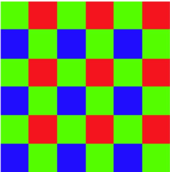 G è in numero doppio rispetto a R e B. Si vede che i G sono i più vicini. La risoluzione in un Bayer è decisa dai G.