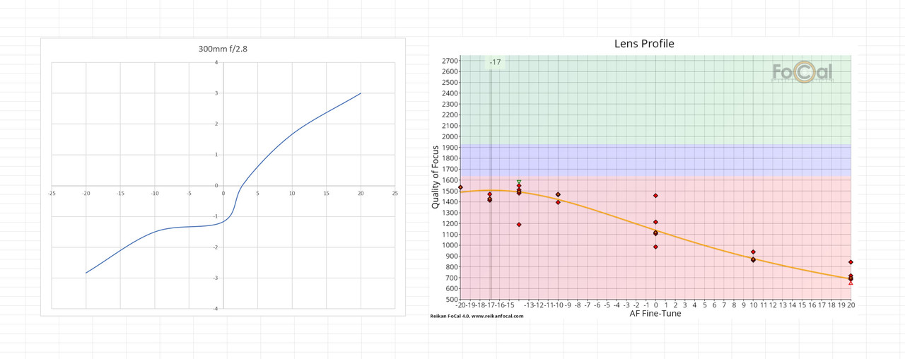 Stessa prova, stesse condizioni, con il 300 f/2.8. Inutile dire che se metto -17 di correzione va in front focus. Anche qui 12 EV, condizioni ottimali. Come la mettiamo?