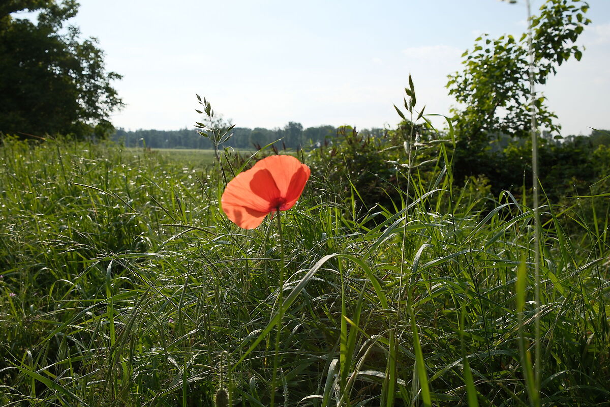 Intanto, appena mi incammino verso la campagna, mi trovo davanti un bel sole pieno per le sette del mattino. Niente stella ma accidenti quanto flare.