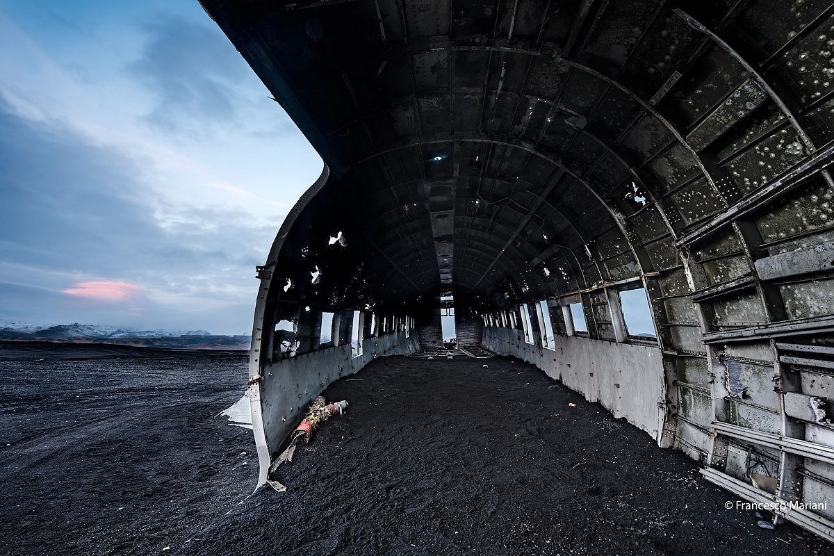 Ecco un altro scorcio d'Islanda, sperduto e molto particolare, lo abbiamo trovato dopo parecchie ore in jeep, dispersi in una zona desolata perché colpevolmente mi ero dimenticato in ostello il Gps... riprendo un testo che scrissi quel giorno: Giornata ventosa (qua significa che per poco non volano macchine) e piovosa, quindi cosa c'è di meglio che fotografare due delle più grosse (e belle) cascate d'Islanda? Sono completamente lavato e come una conchiglia custodisce il rumore del mare, io ho la turbina di un aereo che mi fischia nelle orecchie. A proposito di aerei, ho fotografato anche il relitto di un vecchio Dakota, il cui pilota deve aver evidentemente ritenuto geniale atterrare in mezzo ad una spiaggia nera, completamente deserta. Francamente non so se fosse sopravvissuto all'impatto, mi piace pensare di sì, se non altro per immaginarmelo intento a maledire l'Islanda alla scoperta che il primo villaggio si trovava a 50 km da lui, col vento e la pioggia... magari si chiamava pure Francesco.