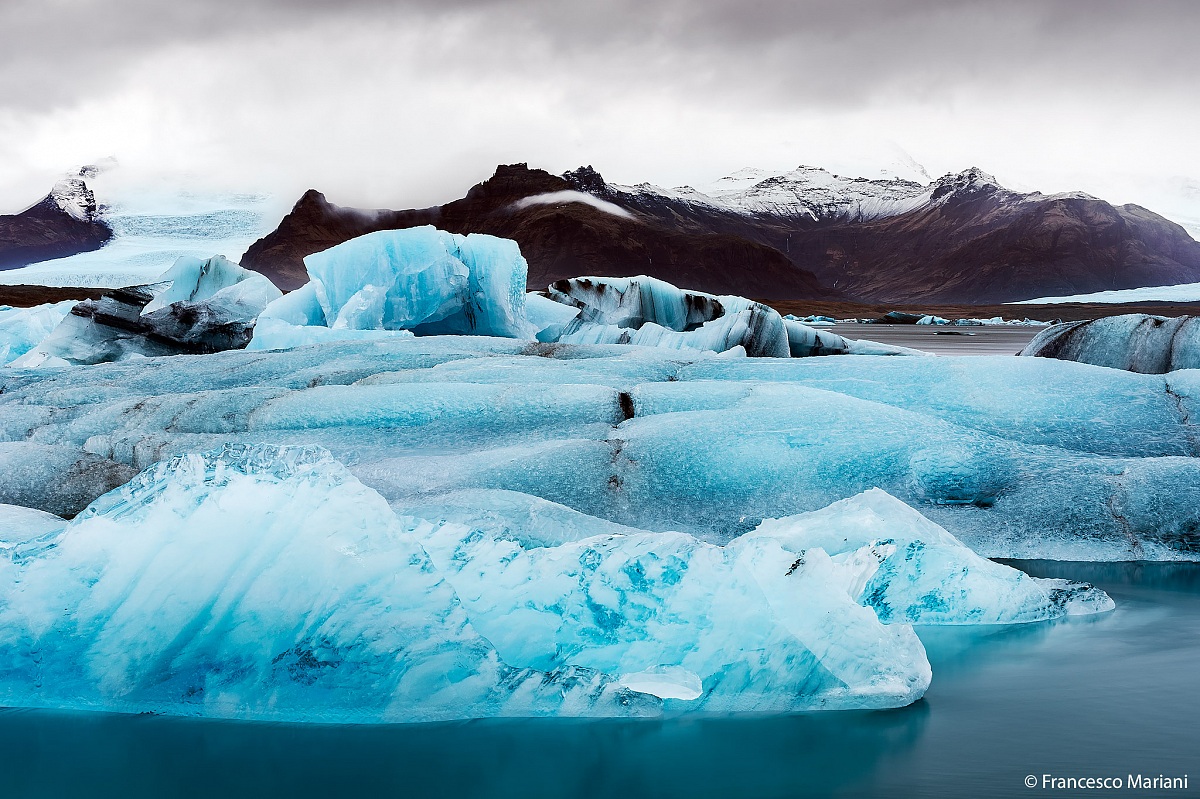 Appena arrivati al ghiacciaio dello Jòkulsárlón dalle fredde acque vediamo comparire una foca, che ci saluta per poi scomparire immediatamente dietro ai banchi di ghiaccio. Mentre la osservo, mi ritrovo a pensare a una ciambella calda, a una grossa tazza di cioccolata capendo così che, in quel preciso istante, la poesia non era in me. Stavo impazzendo; La luce non era delle migliori, piovigginava continuamente e iniziavo a sentire la stanchezza del viaggio sulle spalle... morale: Non riuscivo a fare uno scatto che mi piacesse veramente. Decido di concedermi uno dei pochi lussi durante la vacanza e mi fermo a prendere qualcosa al bar lì vicino. Rinvigorito dagli zuccheri, torno a costeggiare il ghiacciaio e finalmente mi si è palesata davanti agli occhi questa magnifica visione, ho dovuto solo scattare. A volte quando sei troppo stanco, non riesci a vedere con la mente, ma solo con gli occhi. Quella volta la ciambella e la cioccolata calda mi hanno cambiato la giornata.