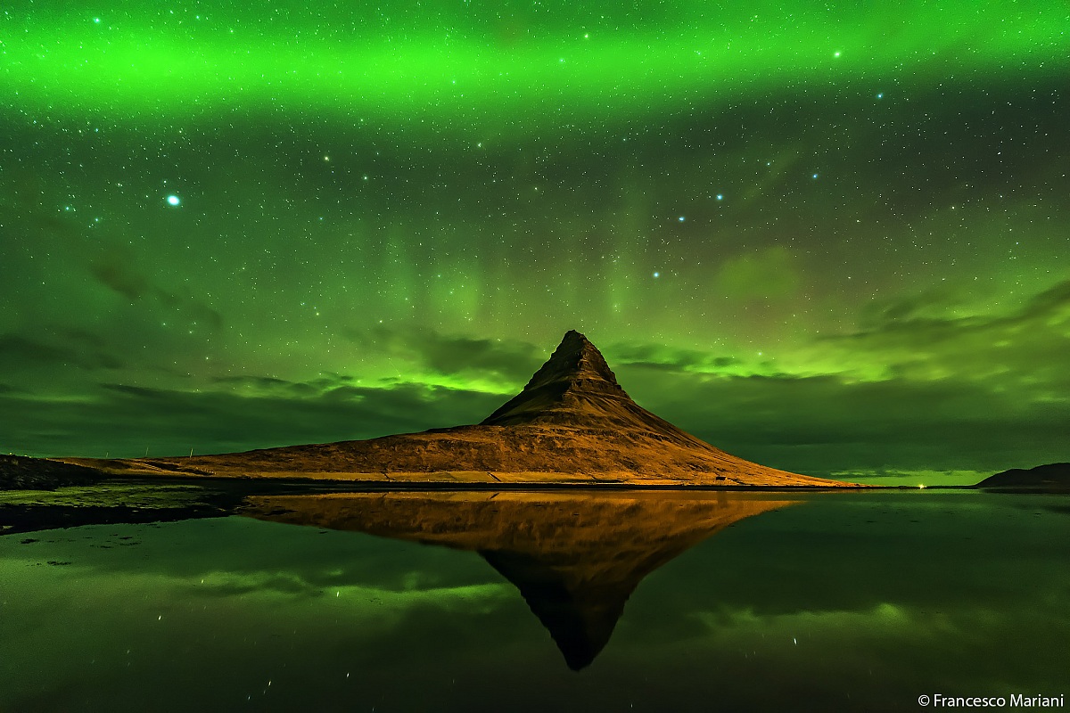 Nei pressi del monte Kirkjufell ho potuto ammirare la mia prima aurora in assoluto, un'emozione indescrivibile. Fotografarla è stata una corsa contro il tempo poiché il cielo, che era inizialmente coperto, si è rasserenato parecchie ore prima di quando avessero anticipato le previsioni, facendo così apparire l'aurora all'improvviso, esattamente quando noi eravamo ancora in ostello intenti a prepararci. Dopo quell'esperienza abbiamo giurato solennemente di non fidarci mai più delle previsioni meteo, uscendo sempre con congruo anticipo. Con buona pace del nostro sonno.