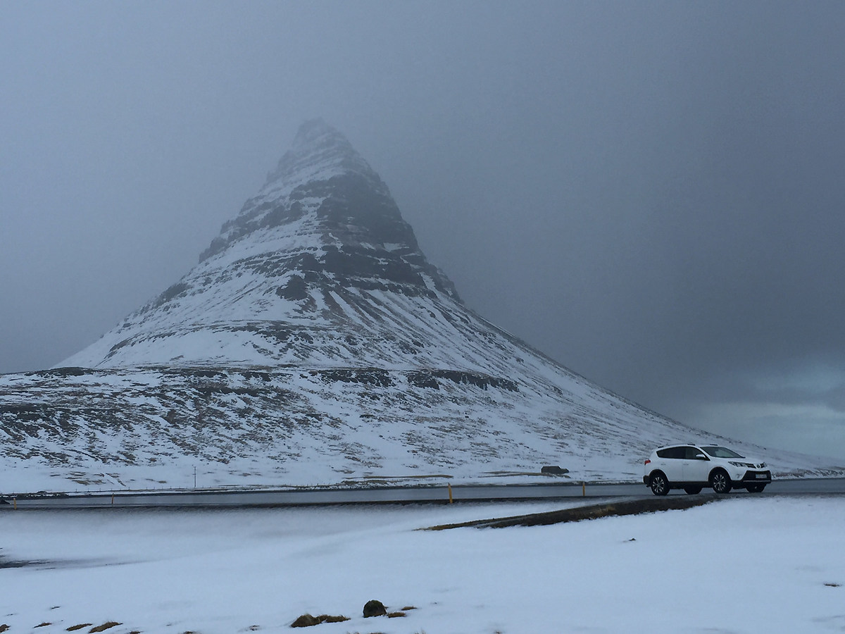 Martedì 1 Marzo Le prime comunicazioni arrivano alle 22, la compagnia area ha inviato una mail con scritto che il check in sarebbe stato domenica alle 1:30 (abbiamo dato per scontato pm). E invece, per fortuna, alle 22:40 pochi istanti prima di andare a dormire il personale dell'albergo ha infilato un foglio sotto la porta della camera con scritto come orario di 1:30am (dopo appena 3 ore). Ci infiliamo al letto, sveglia alle 00:30,ma non finisce qui. In arrivo all’ 1:00 am un nuovo comunicato con nuove informazioni,il volo è alle 8:00am. Alle 9:00 in punto l'aereo lascia l’Inghilterra. Esilarante...Finalmente partiamo. L’aereo sorvola l’Islanda, un’isola completamente bianca. Restiamo subito stupiti di come possa essere tutto dello stesso bianco candore a perdita d’occhio. In men che non si dice ci ritroviamo a solcare le strade Islandesi sul nostro 4x4 direzione Kirkjufell