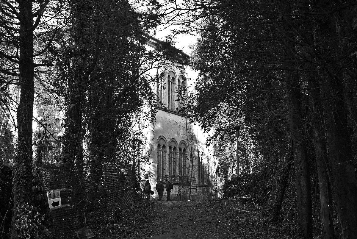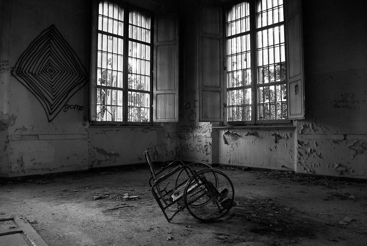La prima cosa che mi viene in mente, forse stereotipata, è la scena di uno di quei film horror in cui si entra in ospedali o manicomi abbandonati ( e questo è…), la giornata è piuttosto grigia e si presta alle considerazioni del caso…