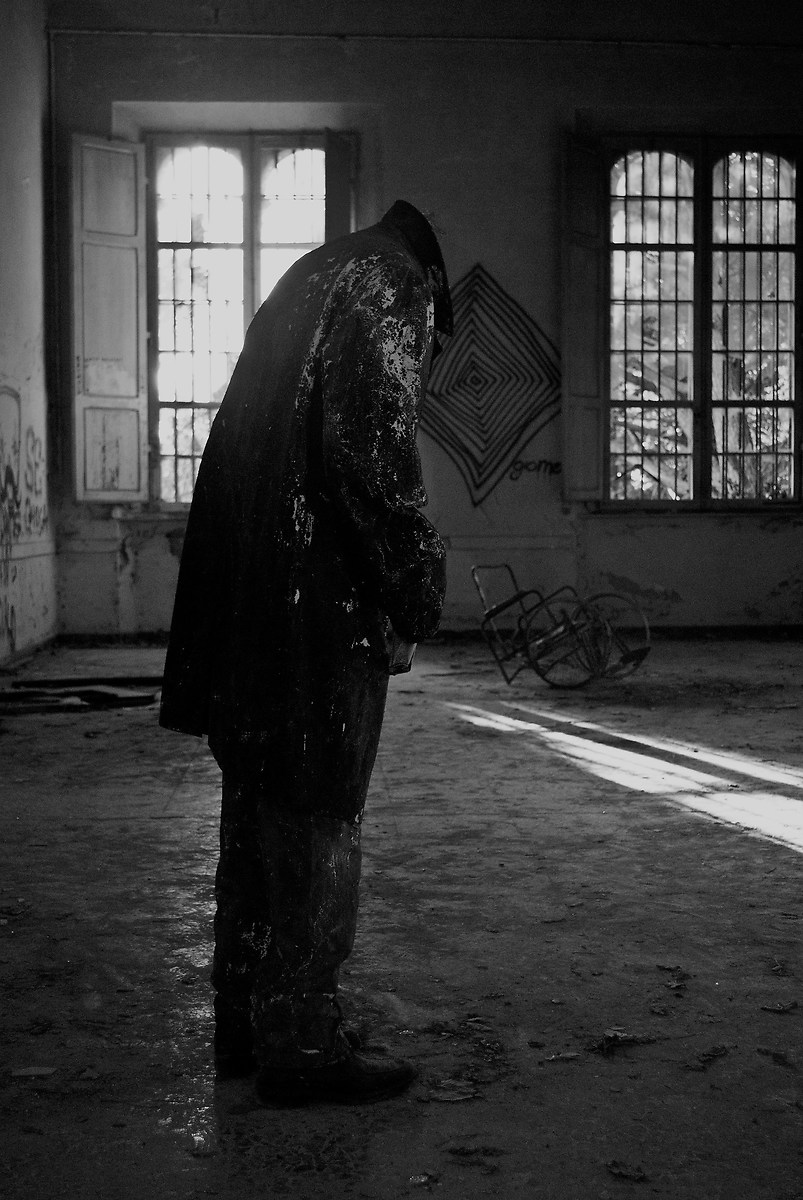 Ma dura poco proseguendo diventa subito più buio, le camere dei corridoio sono adesso piene di ombre, cerco di ricordarmi da dove sono arrivato, ma comunque non sono solo ci sono altre persone in giro. Scatto foto, sono distratto.. Mi volto e nella stanza opposta dove sto scattando vedo una figura in piedi immobile con un pastrano nero, in penombra, non ha la testa. Per una frazione di secondo non so se il cuore si è fermato, se il sangue si è ghiacciato, se i peli sulle braccia si sono drizzati, o tutto quanto insieme ma in quel preciso momento sono entrato nella Follia della Mente Umana e ho cominciato a sentirmi veramente dentro a quelle mura.