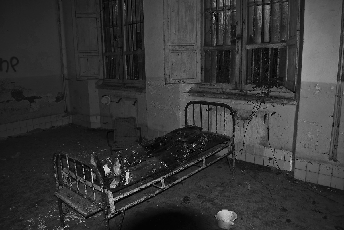 Mi addentro lungo i corridoi , nelle camere dei pazienti: letti abbandonati oramai ridotti a scheletri arrugginiti. Su uno di questi un manichino sembra irrigidito e quasi immobilizzato da una invisibile camicia di forza, non deve essere stata poi così diversa l'immagine reale.