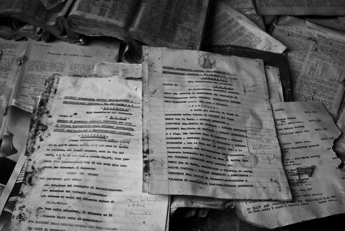 Ancora una stanza, con migliaia di fascicoli sparpagliati per terra. Forse un archivio, prendo qualche foglio in mano, oramai ingiallito dal tempo e leggo nomi, cognomi, date; fa uno strano effetto dare un nome alle ombre che aleggiano su questi muri.