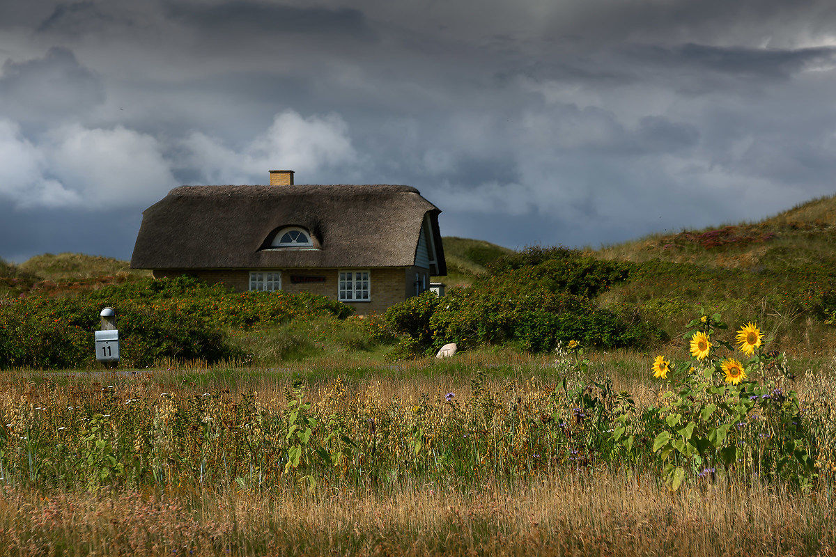 Era uscito il sole e mi sono ritrovata su una striscia d'asfalto spettacolare sospesa tra le dune di sabbia che celano il mare del Nord e e le acque tranquille del fiordo di RingKobing. Un paesaggio davvero unico. Consiglio di godersi questo ambiente con più calma. Lungo la strada vi sono diverse aree attrezzate con panchine e tavoli dove potersi fermare per fare fotografie o anche per pranzare e il tutto riparato dal vento. Una sosta per risalire con il fiatone una duna,giunta in cima mi affaccio sulla spiaggia che sembra non finire mai, uno sguardo invidioso a chi fa volare gli aquiloni, monta una tenda, fa il bagno e poi giù di corsa sulla sabbia, di nuovo in viaggio per qualche chilometro. Anche quando non si vedono né il mare né il fiordo, la campagna è affascinante, si rimane incantati a veder sfilare un campionario di architetture da cartolina: tipiche case di legno con tetti di paglia, case a graticcio, casette rurali bianche e nere diventate patrimonio nazionale da tutelare così come sono e tramandare ai posteri , fattorie, eleganti case moderne fatte quasi totalmente di vetro. Quasi tutte le case hanno davanti la bandiera danese che qui non smette mai di sventolare.