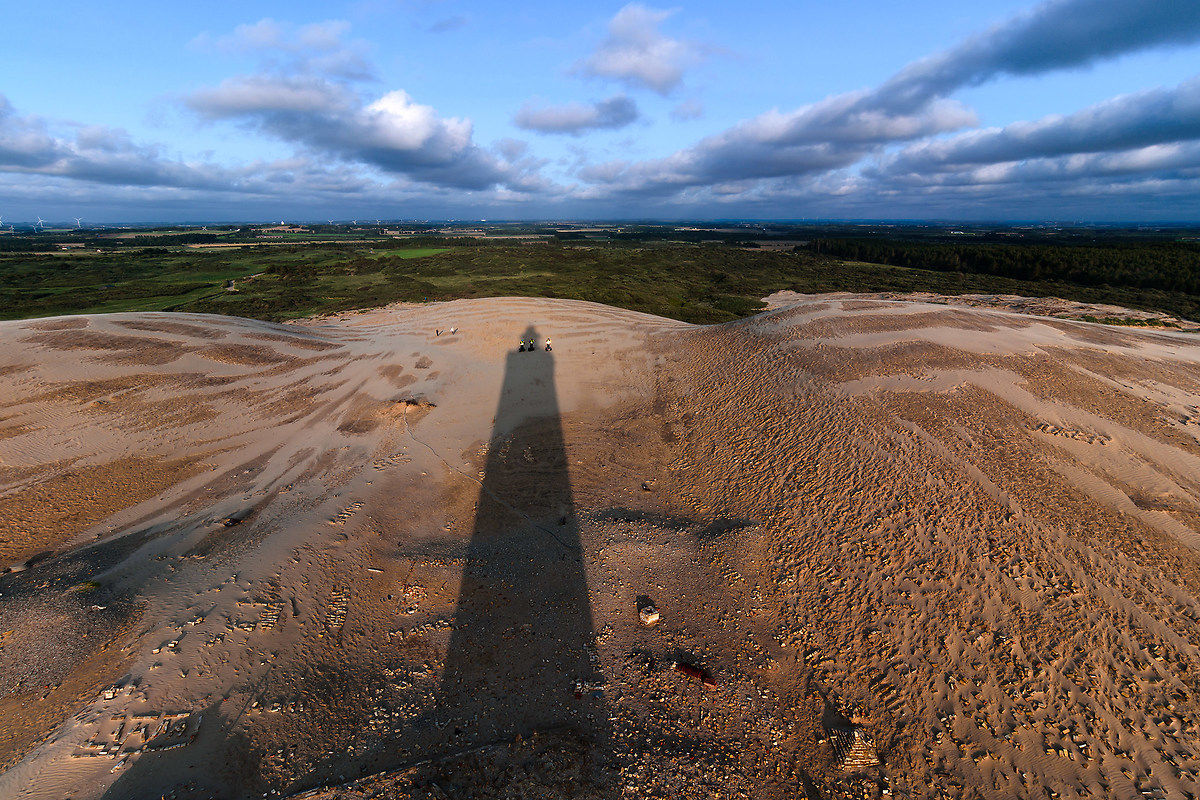 Una specie di oasi al contrario, ovvero una zona di deserto in mezzo alla brughiera, una striscia beige in mezzo al verde. Il deserto al nord Europa non te lo aspetti! E' il fenomeno delle dune mobili, dei banchi di sabbia che il vento trasporta dalla costa verso l'entroterra, avanzando di 15 metri all'anno. Le dune di sabbia possono raggiungere un'altezza di 40 metri.