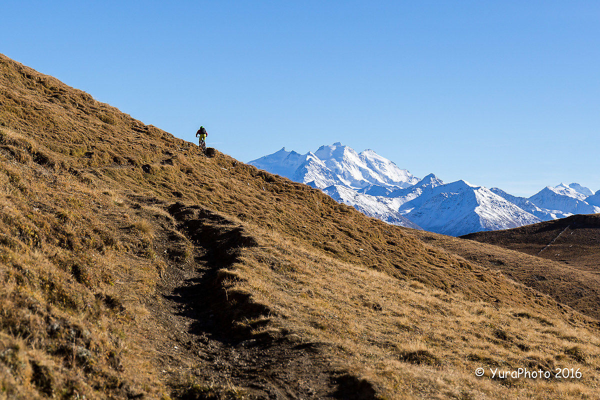 - Grataculo mod: partenza cün la cüriera (il mitico Postale rossocrociato) dal fondovalle del Rodano dal paesino di Leuk (ca. 600 mt. SLM) fino a Leukerbad (ca. 1400 SLM) famosa stazione termale, salita in funivia alla Torrent Alp (ca. 2300 SLM) e da li ca. 700 mt di dislivello per la cima di cui la maggior parte da effettuarsi portando la MTB in spalla perchè le pendenze ed il tipo di terreno non consentono di pedalare in salita.
