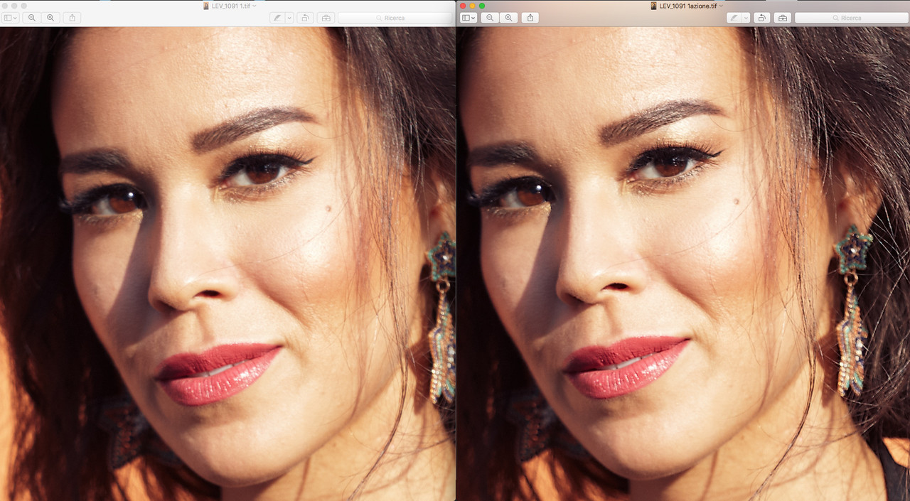 Allora ragazzi.... la novità è questa, il mio amico ed io stiamo lavorando da qualche giorno ad un'azione che agisca sui ritratti. La cosa non è facile perchè è praticamente quasi indispensabile andare ad operare localmente La cosa difficile era trovare un metodo che riuscisse ad operare sulle ciglia ed i capelli, lasciando pressochè inalterato lo sfondo sfocato (quindi primo di rumore generato dallo sharpening) e la pelle. Ovviamente il concetto è sempre quello del pulsante magico, quindi quello che vedrete è ottenuto premendo il solito bottone e basta. Le abbiamo provato un po' tutte, vari metodi, anche partendo da conversioni colore ed operando sul CYMK. Insomma... sembrerebbe che abbiamo trovato qualcosa che riesca in qualche modo ad agire localmente, quindi, sulla frequenza spaziale di ciglia e capelli. Vi metto qualche esempio, poi ditemi voi se la cosa può essere interessante. Esempio 1 RAW convertito in Tiff, SENZA applicare nitidezza, quindi AZZERANDO tutti i cursori della nitidezza, per lasciare pulito lo sfondo.