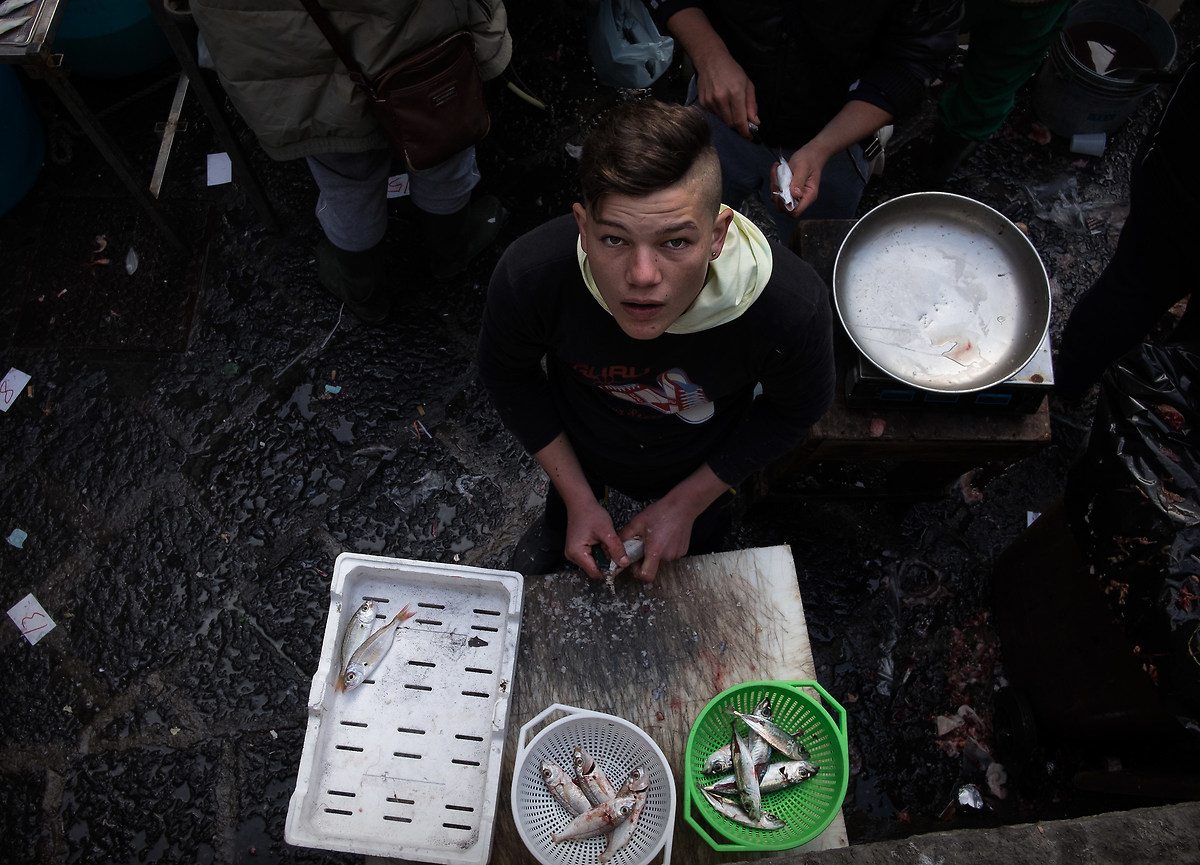 Un po di tempo fa, girando nelle foto della K30 trovai questo autore che non conoscevo che mi è piaciuto tantissimo per uno stile concreto, efficace e esteticamente molto valido. Un po stuccato da certi reportage di viaggio esterofili, ho trovato una conferma alla personale opinione che non occorra camminare molto per trovare più vita vera e meno clichè. Ho trovato molte difficoltà nello scegliere una immagine, tra le molte, anche di serie che mi hanno colpito. Alla fine ho scelto questa come rappresentativa di come una mera immagine documentativa possa colpire e centrare molti aspetti. Titolo: Pescivendolo.