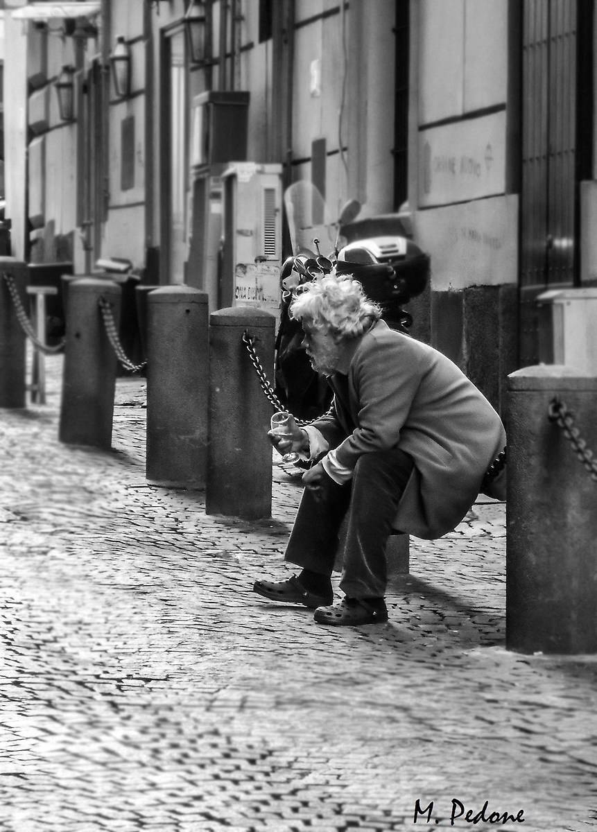 Solo ora, obbligato ad un passo lento da un corpo stanco, rifletto sull'inutile affanno della mia passata giovinezza, sul tempo perso a girare le lancette di un orologio che non mi è mai appartenuto, parte di un ingranaggio dal quale per pigrizia e scoramento non ho mai avuto il coraggio di uscire. Ora vago tra la strada annebbiata della mente dove, come ombre, scorgo le mie accantonate passioni e quelle di chi, come me, ha rimandato inutilmente a un domani che non è arrivato mai. Io...come tanti per la via.