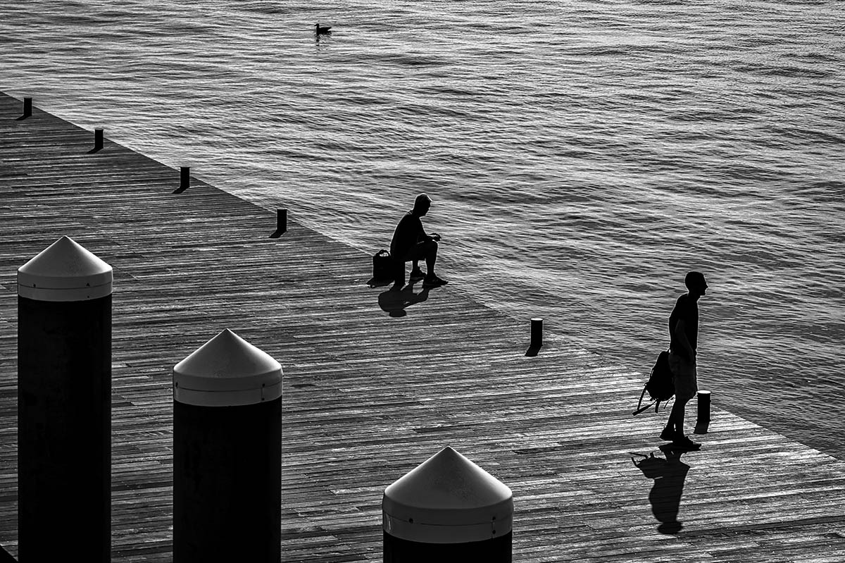 Foto in cui siano evidenti essere umano e ambiente marino e le relazioni tra i due elementi.