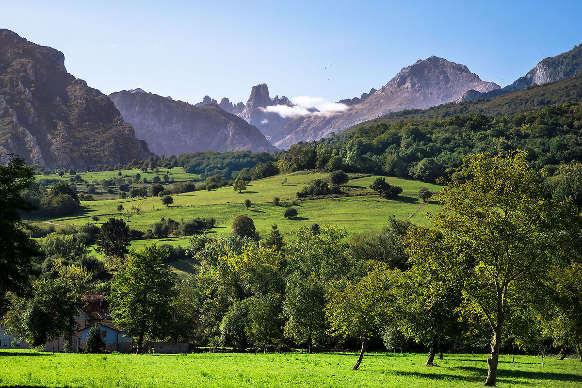 Fuori dai centri abitati, verso l'entroterra, le montagne troneggiano, incorniciando e separando come una lama la valle asturiana dal resto della Spagna e, di fatto, rendendo questa terra una regione completamente diversa dal resto della nazione. Il Parque Nacional de Los Picos de Europa, tra le montagne, risulta essere la più interessante, poiché custodisce all'interno delle perle di rara bellezza come quello del Picu Uriellu, la signora tra le montagne locali, o il santuario di Covadonga, meraviglioso luogo di culto incastonato tra le montagne, punto dalla quale partì, sotto il comando di Pelajo, la riconquista cristiana verso i mori. Ovunque in Asturia il nome di Pelajo è sul limite della santità. Non ci sarà una singola occasione, in qualunque luogo vi troviate, di non sentire o leggere questo nome. Persino ai bambini viene dato il nome di quest'uomo. Praticamente una leggenda dei tempi passati.