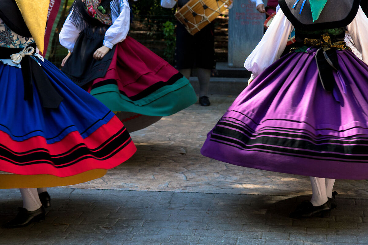 Le fluttuanti gonne dei tipici abiti asturiani durante una danza tradizionale