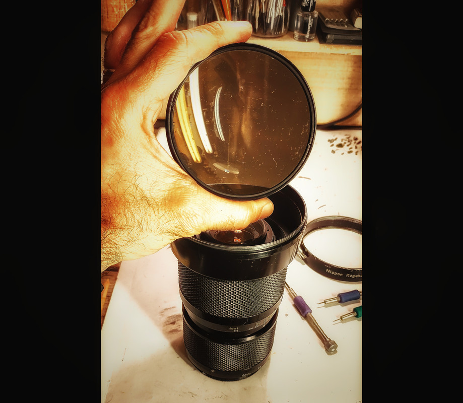 I danni meccanici riguardavano l'ovalizzazione per vari motivi del tamburo alesato di zoom che trascina avanti ed indietro il terzo gruppo flottante, dotato di movimento indipendente dal secondo. Cio' provocava il disallineamento delle lenti nei movimenti e conseguente perdita di qualsiasi gusto nell'usarlo. Ho quindi proceduto alla ricalibratura di precisione del soggetto incriminato con gli strumenti piu' adeguati e di provata efficacia.