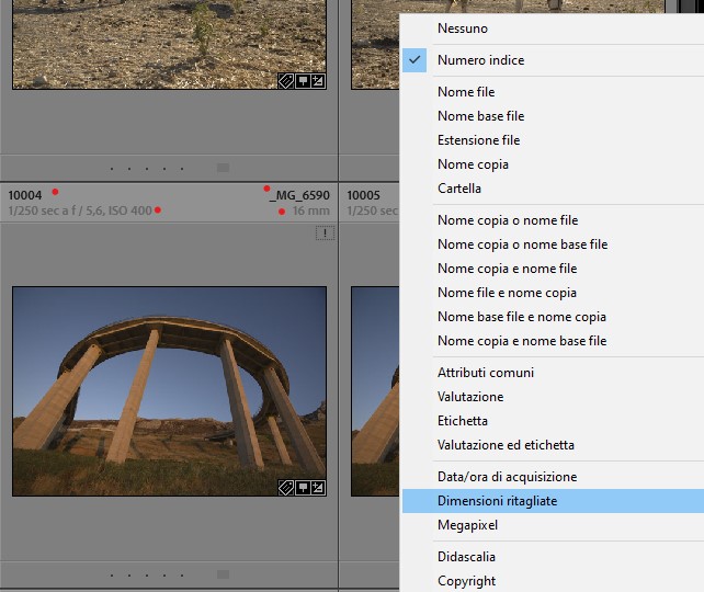 4. » Lightroom visualizza dimensione foto
