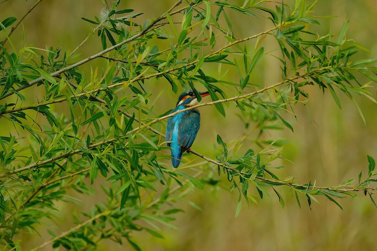 “ Per questo ho il 100-400: alla fine lo posso utilizzare come se fosse un binocolo e per di più ci posso anche fotografare che è la cosa più importante. O dite che verrei preso dalla frenesia di dover fare la foto rischiando di tralasciare lo studio delle varie specie? „ Il binocolo, oltre ad essere più compatto, offre una visione ben diversa da quella offerta da un EVF e non occorre svenarsi per prendere un binocolo con cui osservare molto bene e con 300/400 grammi di peso in totale. Personalmente, non c'è il paragone rispetto all'osservazione attraverso un EVF, ma anche attraverso un mirino ottico. Per rispondere alle altre domande. Ci sono tende con feritoie su tutti i lati e questo riduce parecchio il problema dell'osservazione/foto in tutte le direzioni. Il telo garantisce una maggiore flessibilità, ma devi stare molto più attento a non generare nessun movimento di sorta, altrimenti scappano. Sul fatto che gli animali passino proprio di lì, è legato alle tue osservazioni preliminari. Io perdo tantissimo tempo a capire le abitudini degli animali e cerco di segnarmi i posti dove passano. Nel caso degli uccelli, oltre ai posatoi naturali, nulla vieta che tu aggiunga un ramo in una posizione strategica dove vedi che con il tempo, tale posizione viene gradita dagli ospiti. La cosa più bella è l'utilizzo dei posatoi naturali, anche lo scatto ne beneficia, ma talvolta un minimo di aiuto senza disturbare o snaturare l'ambiente circostante, ci sta tutto. Un ramo piazzato bene dove c'è acqua limpida e il pesce si trova, rappresenta una vera manna per il martin pescatore e magari anche per chi lo vuole fotografare. Questa è ovviamente ripresa nel suo habitat senza nessuna modifica.