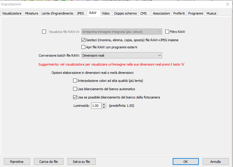 @Tritonal grazie. E' proprio quello che intendevo. @Edmondo: "perchè scatti in raw+jpeg e perchè le scarichi entrambi i formati?" Per comodità. Spesso serve velocemente il jpeg pronto( x il web) che cerco sempre di ottenerlo direttamente in macchina. Ma a volte, se il jpeg ha il bilanciamneto del bianco sbagliato o le alte luci tappate è opprtuno ottenere il file corretto dal raw. Gli scatti buoni li archivio in entrambi i formati. Gli scatti sbagliati li elimino in entrambi i formati.Utilizzo il file raw x ottenere le stampe specialmente di buon formato e a 16bit |