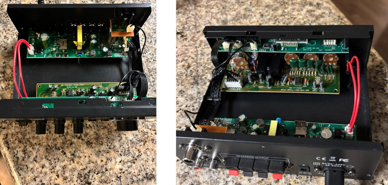per quello che costa l'idea artigianale va più che bene. di rele' non c'è ombra (o di circuito antibump) perché l'ak 45 è basato su un chip TI serie tpa3116 che incorpora internamente tutto il circuito per evitare pop on e off; inoltre lo stesso chip ha anche limitazione termica e di corrente e protezione da corto circuito. Fornisce 2x50 W su 4 Ohm al 10% thd+n con soli 21V (tensione singola). Più realisticamente metà potenza allo 0.1%. Può fornire 2x15W senza alettatura.