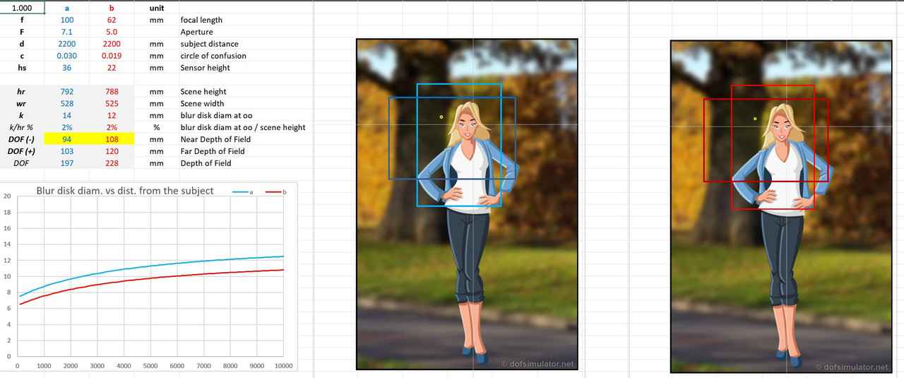 “ La domanda è: A livello di stacco del soggetto e qualità dello sfocato, meglio una full frame a 7.1 o una apsc a F 5 tra quelle citate? „ Dipende sopratutto dalla distanza tra fotocamera e soggetto e dal momento che ad esempio l'equivalente in aps-c di un 85mm su FF è un 55mm la differenza dello sfocato è impercettibile. |