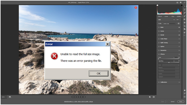 Oppure prova a riconvertirlo col dng converter oppure prova ad aprirlo in darktable e salvalo in tiff oppure prova a eliminare l'estensione e fai l'apertura forzata in PS