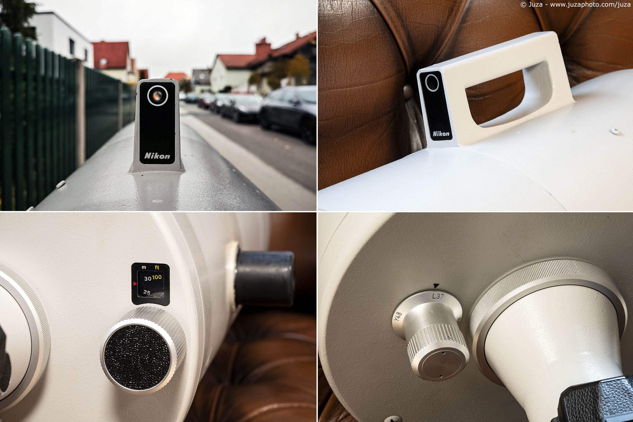 Il suo originale attacco per treppiede si rivela impossibile da usare: è enorme, e richiederebbe un treppiede ancora più grande di quello che abbiamo noi; mi chiedo che supporto venisse utilizzato all'epoca, dato che il diametro dell'attacco su treppiede è quasi 20 centimetri e si monterebbe con tre grandi viti, un sistema che non esiste su nessun treppiede moderno. Ci arrangiamo così con una robusta testa a tre vie e una piastra esagonale montata sul fondo dell'obiettivo.