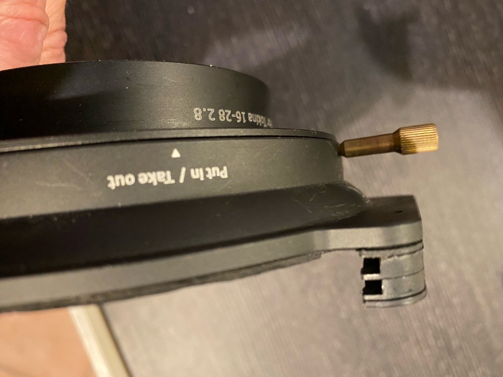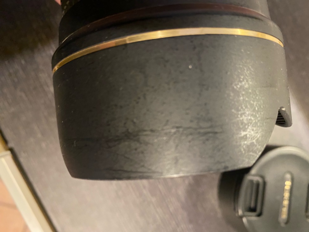 Il paraluce ha dei segni dovuti all'inserimento del porta filtri a lastre, assolutamente necessario per un ottica del genere.