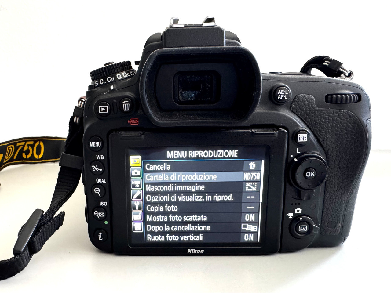 Nikon D750 – 21.536 scatti – ottime condizioni – unico proprietario Vendo Nikon D750 in ottime condizioni, utilizzata sempre a livello amatoriale. Unico proprietario. Scatti: 21.536 (verificabili) Stato estetico: ottimo, minimi segni d’uso Stato funzionale: perfetto, nessun difetto Sensore: pulito Sempre tenuta con cura Incluso: - Batteria originale Nikon - Caricabatterie originale - Tracolla Nikon - Telecomando remoto (Amazon) - Scatola originale Macchina ancora oggi molto valida, con ottima resa e grande affidabilità. Vendo per passaggio a sistema mirrorless. Prezzo: 680 € Disponibile anche obiettivo Nikon AF-S 24-70mm f/2.8 G ED in ottime condizioni, venduto separatamente o in kit su richiesta. Preferenza consegna a mano, ma disponibile a spedizione. Contattami per qualsiasi informazione o foto aggiuntive. Zona: Milano